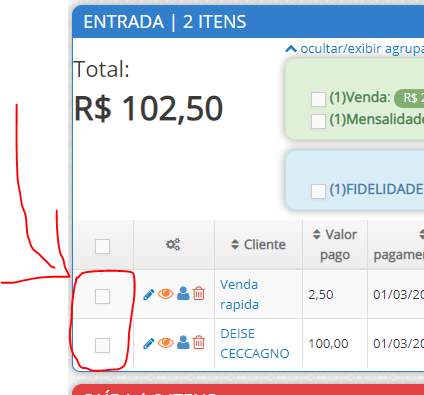 Passo 2 - Selecione os itens de entradas desejados, veja imagem abaixo.