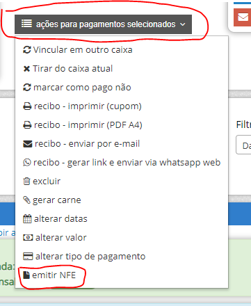Há 2 métodos no sistema que é possível invocar emissão de nf para itens de pagamento.