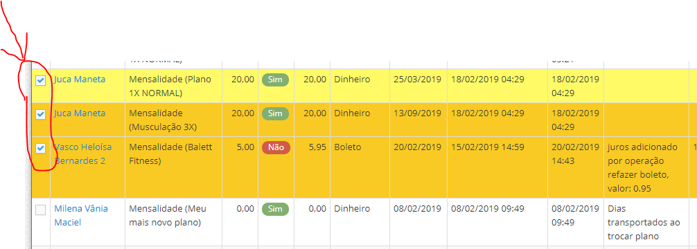 A opção 1 é a área de emissão onde é possível ter mais filtros avançados, e indicado caso academia fizer envio único no final do mês.
