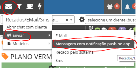 Passo 1 - Acesse menu Recados > Enviar > Mensagem com notificação push no app