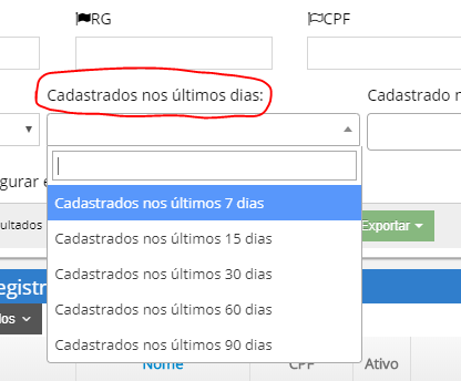 Passo 2 - Altere o filtro Cadastrados nos últimos dias, veja imagem abaixo: