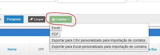Passo 4 - Se desejar exportar pra pdf ou Excel, procure a opção Exportar, veja imagem abaixo:
