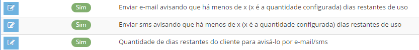 - Como configurar o sistema para enviar uma mensagem por e-mail/sms para o cliente, alertando-o sobre quantos dias de uso na academia ele possui