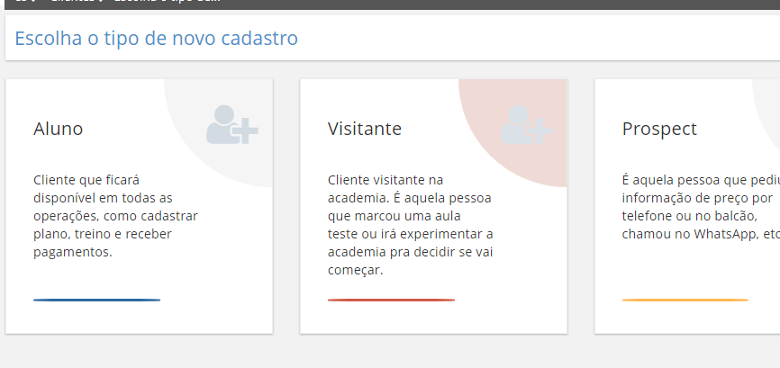 Na maioria das vezes você irá cadastrar um cliente aluno da academia.
