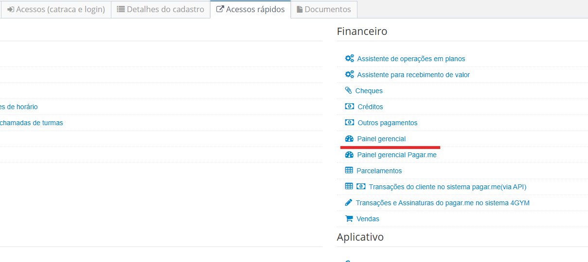 1. Abra o cadastro do cliente que você deseja gerar o contrato e clique em "Acessos rápidos";
