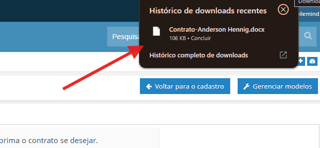 Obs: O modelo do contrato já deve ter sido configurado no sistema.