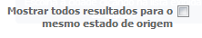 Caso nenhum resultado for encontrado, um painel notificando será exibido na parte superior da tela do aplicativo. Tente marcar a caixa de seleção "Exibir resultados para o mesmo estado de origem" caso esteja interessado nas cidades próximas a sua com o mesmo destino.