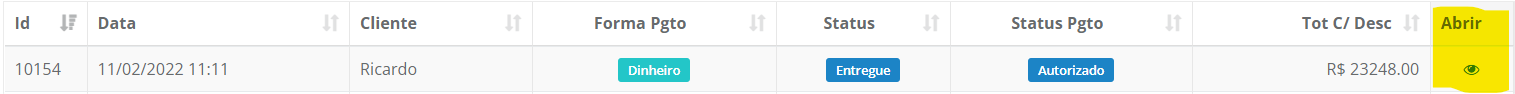 2 - Vá até o pedido desejado e clique em "Abrir".
